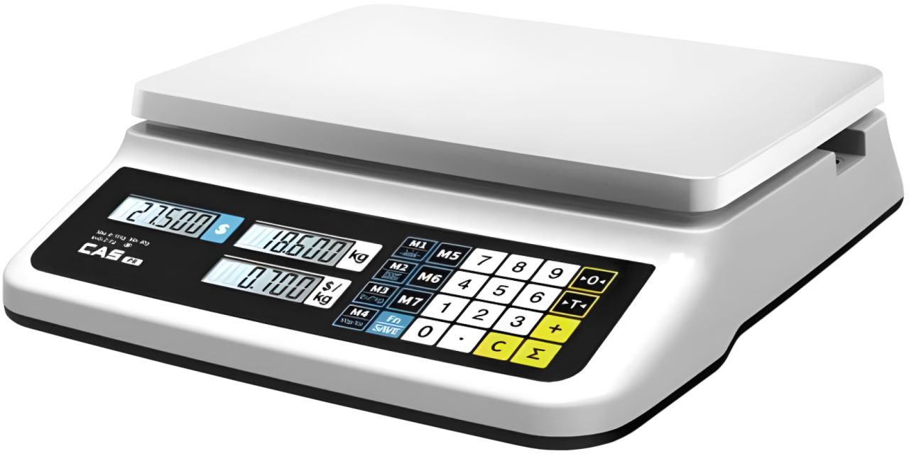 Весы торговые CAS без стойки. Яркий светодиодный дисплей, Выборка массы тары, Суммирование стоимости покупок, Расчет сдачи, Автоматическое отключение питания при перерывах в работе, Питание от сети или от аккумулятора, Платформа из нержавеющей стали 320×210мм
